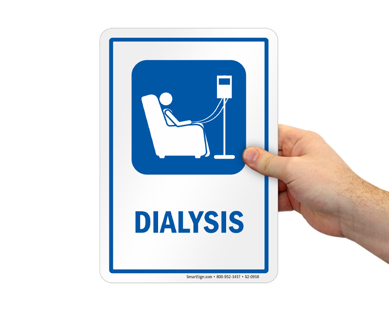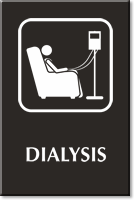 Signs like these help patrons and staff find critical care areas like the Dialysis room swiftly.