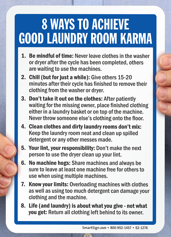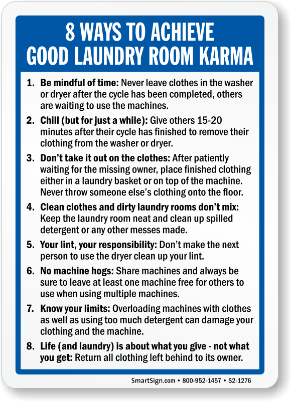 Laundry Room Rules Sign: 8 Ways to Achieve Good Laundry Room Karma S2-1276
