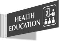 Health Education Room Signs are a professional way of marking the department for proper identification. Directional arrows as well as the symbol guide visitors to the appropriate health education department.