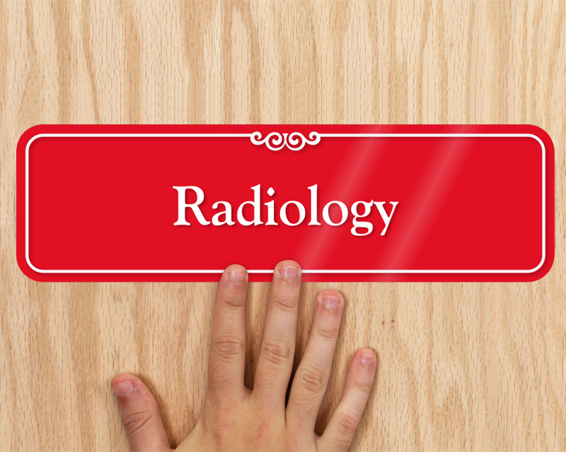 Crucial examination departments like radiology should be marked with a clear signs for proper identification. Wayfinding signs with directional arrows ensure people find their way to the right room.
