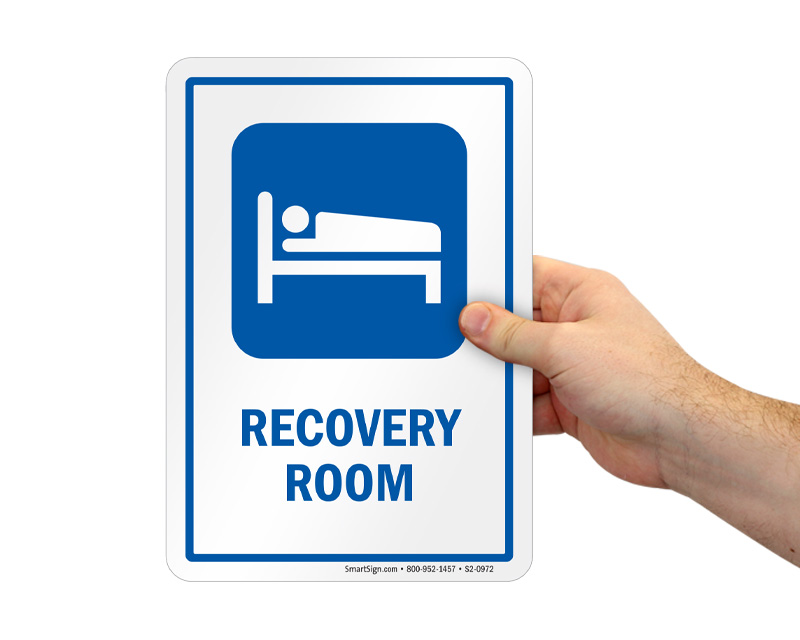 • • Simple room name signs identify recovery rooms and can be placed outside the door. Recovery room signs are available in a variety of colors and styles to match the hospital's theme.