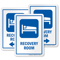 • • Simple room name signs identify recovery rooms and can be placed outside the door. Recovery room signs are available in a variety of colors and styles to match the hospital's theme.